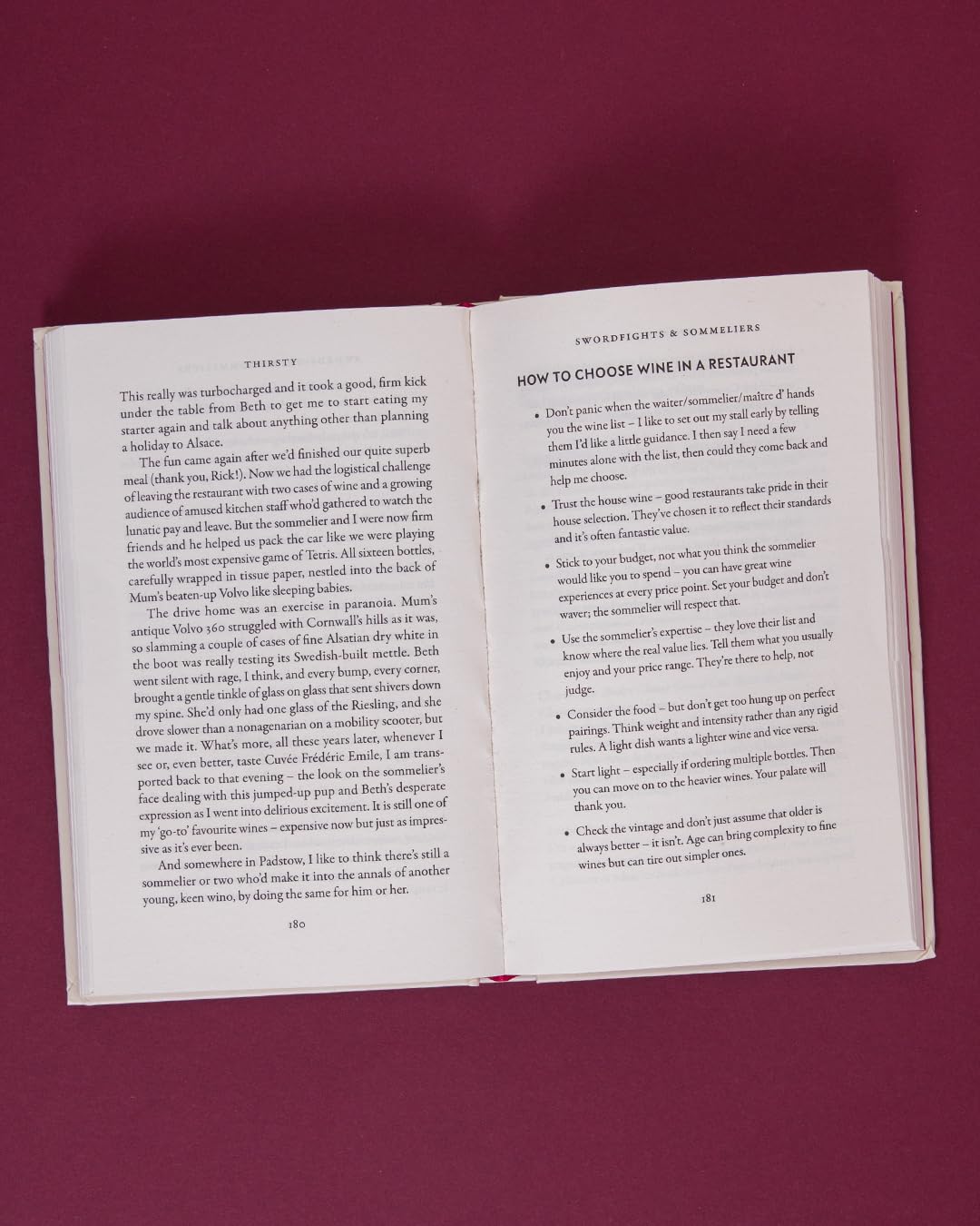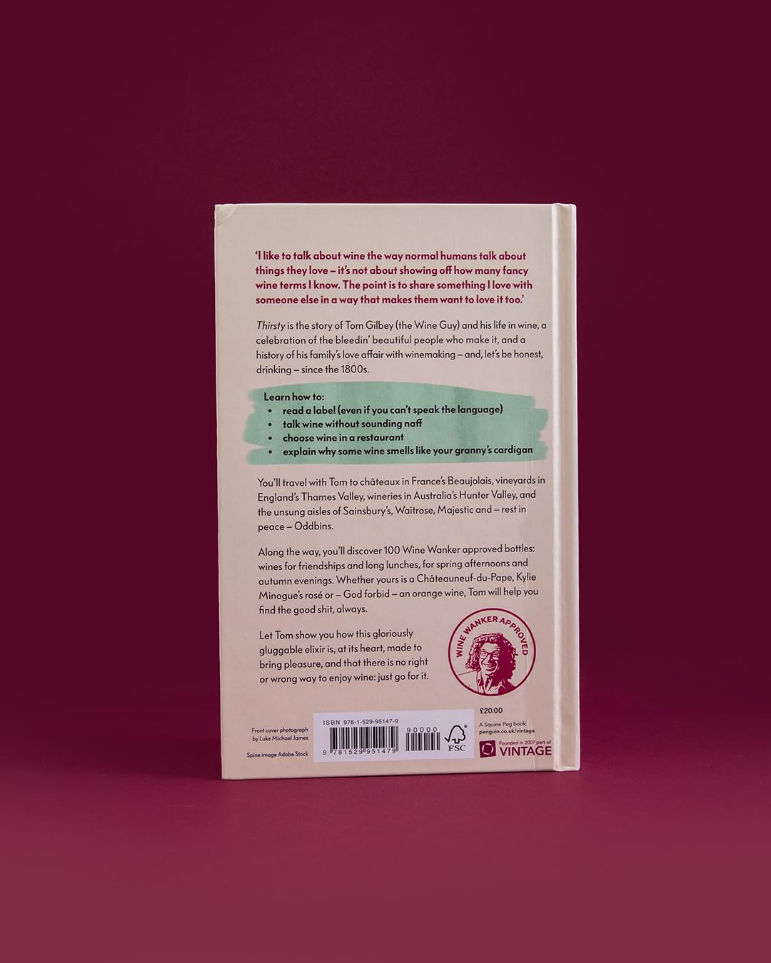 Thirsty is the story of Tom Gilbey (The Wine Guy) and his life in wine, a celebration of the bleedin beautiful people who make it, and a history of his familys love affair with winemaking - and lets be honest, drinking - since the 1800s.Learn how to:- read a label (even if you cant speak the language)- talk wine without sounding naff- choose wine in a restaurant- explain why some wine smells like your grannys cardiganAlong the way youll discover 100 Wine W*nker approved bottles: wines for friendships and long lunches, for autumn afternoons and winter evenings. Whether yours is a Chateauneuf-du-Pape, Kylie Minogues rose or - God forbid - orange wine, Tom will help you find the good stuff, always.Let Tom show you how this gloriously gluggable elixir is, at its heart, made to bring pleasure, and that there is no right or wrong to enjoy wine: just go for it.