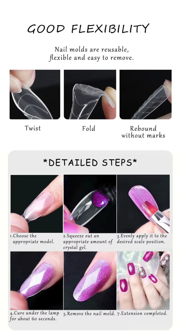 Tipsuri reutilizabile Marquise Square, 120 buc - inoveaza constructia cu gel pe unghia naturala! Produsul eficientizeaza la maximum timpul de constructie deoarece elimina timpul montarii sablonului. Avantaje Tipsuri reutilizabile Marquise : - Pot fi folosite atat cu gel de constructie cat si cu polygel - 12 dimensiuni diferite (Nu este recomandat sa folositi un tips cu o latime mai mica decat unghia naturala) - Usor de folosit - Forme reutilizabile - permit desprinderea usoara si se curata dupa polimerizare - Perfecte atat pentru unghii scurte cat si lungi - Flexibile si rezistente - Forma perfecta pentru realizarea facila a curbei C Mod de aplicare: 1. Pregateste unghia naturala. 2. Alege tipsul de marimea potrivita unghiei. Aseaza pe tips o cantitate mica de gel de constructie sau polygel si creaza forma dorita, fixeaza-l pe unghie, apasand usor. 3. Polimerizeaza in lampa UV LED.( polimerizeaza unghia si pe dedesubt) 4. Inlatura tipsurile rasucind usor de ele. 5. Pileste eventualele denivelari ramase dupa indepartarea tipsului. 6. Aplica un strat de gel de constructie sau polygel cu ajutorul caruia sa creezi apexul 7. Polimerizeaza in lampa UV LED 8. Pileste unghia pentru a obtine forma dorita.