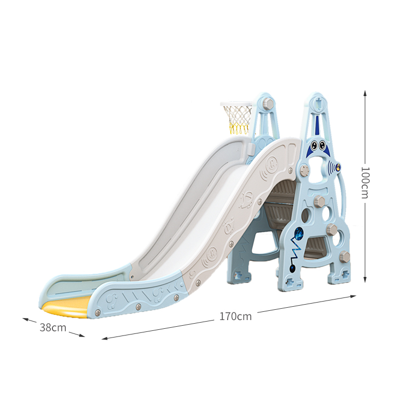 Tobogan Nichiduta Garden Astronaut Blue interiorexterior cu margini rotunjite, trepte largi, protectii laterale inalte si Cos de baschet cu minge inclusa