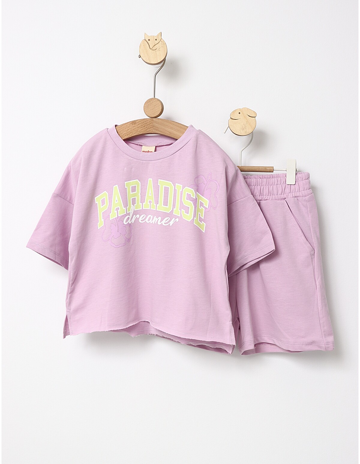 Echipați-vă copilul pentru confort maxim în zilele călduroase de vară cu acest trening stil crop top. Acest set este format dintr-o bluziță cu mânecă scurtă și pantaloni lejeri cu elastic în talie, fiecare piesă fiind concepută pentru a oferi libertate de mișcare și ușurință în purtare. Realizat integral din 100% bumbac, treningul asigură o respirabilitate excelentă și o senzație plăcută pe piele, ideal pentru joacă sau relaxare. Stilul casual și confortabil al acestui trening face din el o alegere excelentă pentru activitățile de zi cu zi, oferind un echilibru perfect între funcționalitate și moda copiilor. Haine bebe, haine bebelusi, haine nou nascut, haine copii, imbracaminte copii, imbracaminte bebelusi.