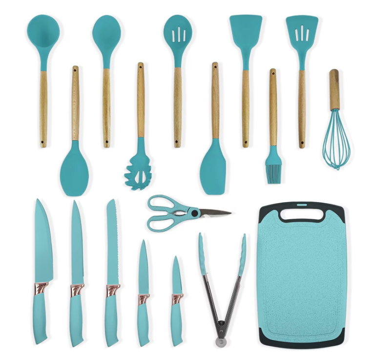 Caracteristici principale: Set complet de 19 piese: Include toate ustensilele necesare pentru gatit, de la spatule si linguri la polonic si tel, acoperind toate necesitatile din bucatarie. Tocator inclus: Setul vine cu un tocator din plastic durabil, ideal pentru pregatirea rapida a alimentelor. Suport de depozitare: Ustensilele pot fi depozitate usor si ordonat in suportul inclus, mentinand bucataria organizata si accesibila. Materiale de calitate: Ustensilele sunt realizate din metal rezistent si plastic durabil, asigurand o utilizare indelungata si usurinta in curatare. Manere antialunecare: Fiecare ustensila este prevazuta cu manere antialunecare pentru o prindere sigura si confortabila in timpul utilizarii. Design modern: Setul are un design elegant, in culori de roz delicat, care adauga un strop de culoare bucatariei tale. Beneficii: Practic si complet: Acest set cu 19 piese este tot ce ai nevoie pentru gatit zilnic, de la preparate simple la retete complexe. Organizare eficienta: Suportul de depozitare inclus te ajuta sa pastrezi ustensilele la indemana si bucataria ordonata. Rezistenta si durabilitate: Materialele de calitate superioara asigura o utilizare indelungata si rezistenta la uzura. Specificatii tehnice: Numar piese: 19 Material: Metal si plastic Manere: Antialunecare Suport depozitare: Inclus Culoare: VERDE TURCOAZ
