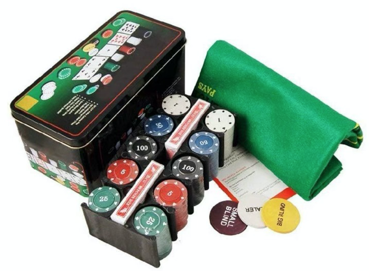 Set Joc de Poker cu 200 Jetoane si Cutie Metalica + Accesorii Complete Set complet pentru Texas holdem poker și alte jocuri de cărți intr-o cutie de metal. Ideal pentru jocul de poker și alte jocuri, cum ar fi zarurile, ruleta, etc. Întregul set este ambalat intr-o cutie frumoasa din metal. În set: plansa pentru joc cu dimensiunea 92cm x 61cm; Cutie metalică; 200 de jetoane profesionale; 1 jeton dealer; 1 jeton Big Blind; 2 seturi de cărți Transformă orice seară într-un adevărat spectacol de poker cu acest Set Joc de Poker cu 200 de jetoane și cutie metalică. Gândit special pentru pasionații jocurilor de noroc, fie ei începători sau jucători experimentați, acest set oferă tot ce ai nevoie pentru a recrea atmosfera autentică a unui cazinou, chiar în confortul casei tale. Setul include 200 de jetoane de calitate superioară, perfecte pentru a adăuga un plus de realism fiecărei partide. Aceste jetoane vin în culori distincte, ușor de diferențiat, asigurând o experiență de joc fluidă și captivantă. Greutatea și textura lor sunt similare cu cele folosite în cazinourile profesionale, oferindu-ți senzația autentică de a fi într-o sală de jocuri de lux. Fiecare jeton este creat din materiale durabile, rezistente la uzură, astfel încât să te bucuri de ele ani la rând.