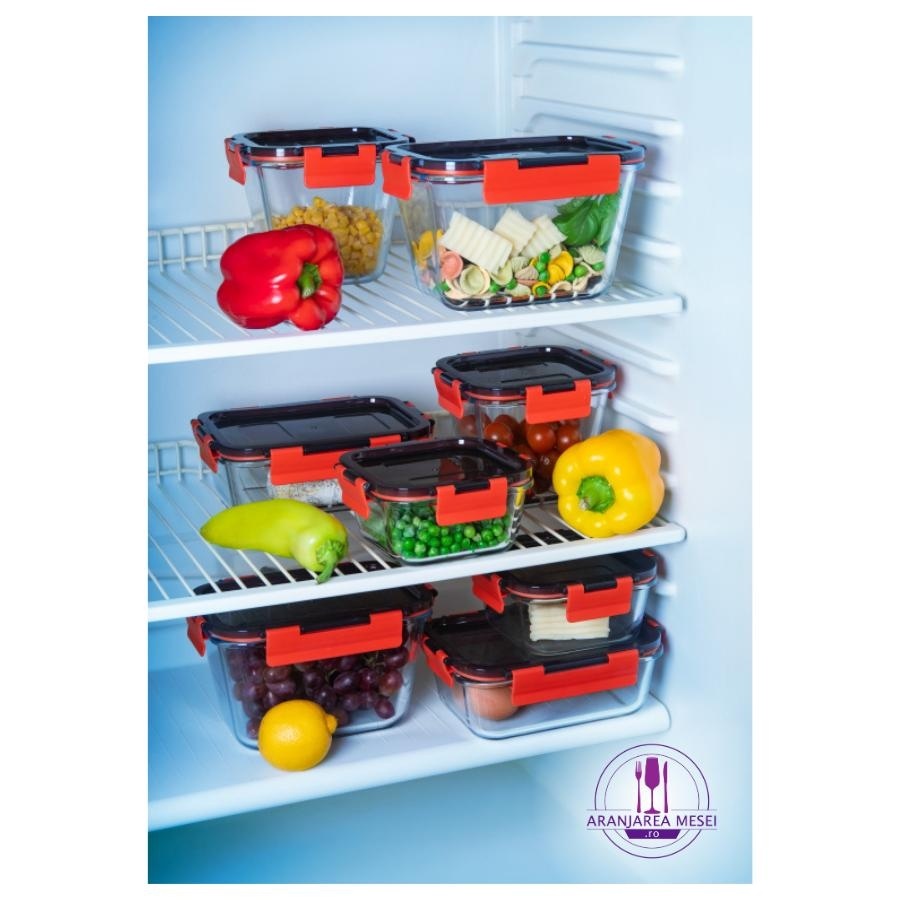 Vas termorezistent rectangular cu capac plastic CLICK 0.85 L