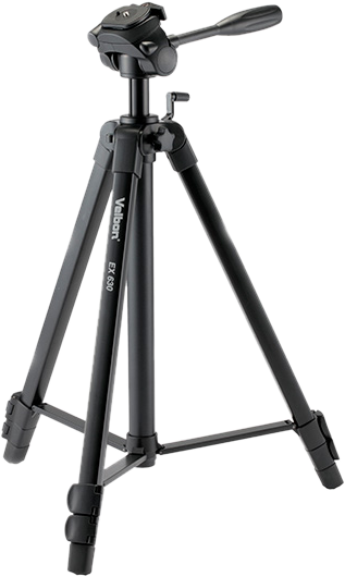 O nouă generație de trepiede, ideală atât pentru începători, cât și pentru fotografi avansați, Velbon aduce calitatea în seria sa de trepiede EX entry-level. Trepiedul Velbon EX-630, realizat din aluminiu, este echipat cu un cap panoramic și de înclinare pe trei direcții, fixat permanent. Acesta poate ajunge la o înălțime maximă de 168 cm cu coloana centrală complet extinsă. Un nivel cu bule integrat asigură alinierea perfectă a camerei la orizont, oferind stabilitate în orice condiții de fotografiere. Pentru protecție și transport ușor, este inclusă o husă de transport.