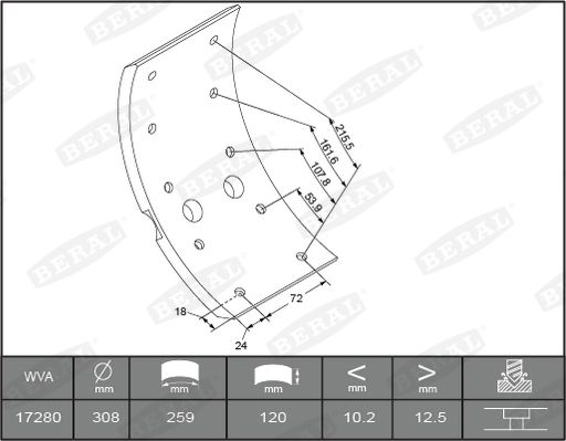 Set garnituri de frictiune, frana tambur BERAL KBL17280.3-1561