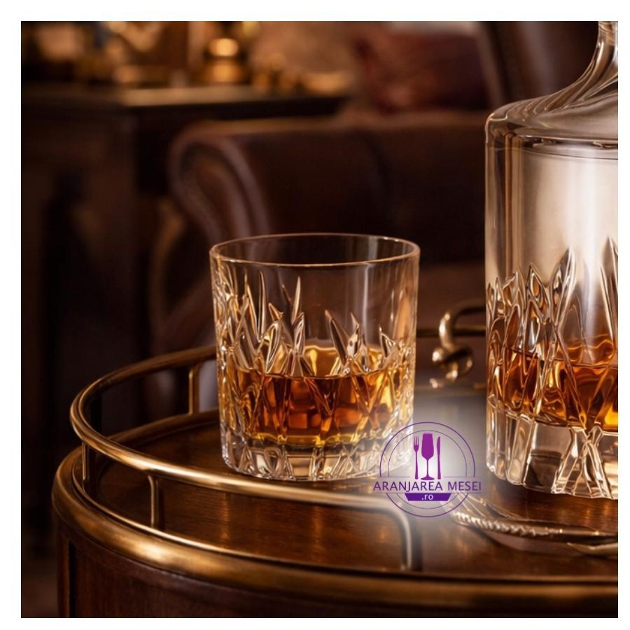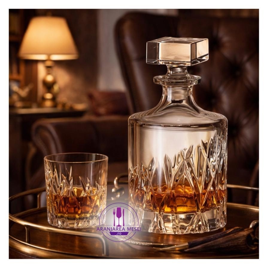 WICKER Set 6 pahare si decantor cristal Bohemia whisky