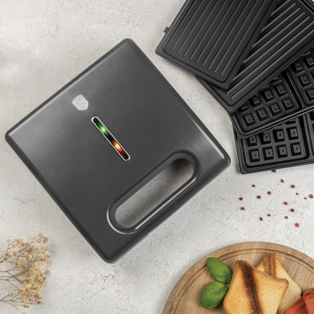Sandwich maker 3 in 1 Berlinger Haus, Anthracite, 22.5x13 cm, aluminiu, antracit mat