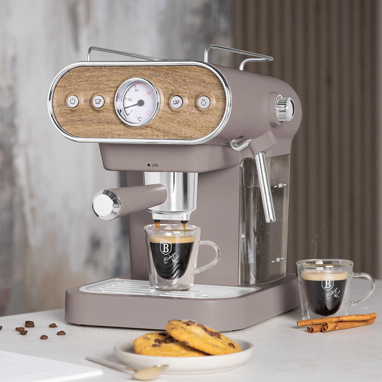 Espressor 3 in 1 Berlinger Haus, Taupe Nordic, 950W, 23x26.5x30.5 cm, inox, taupe mat/natur
