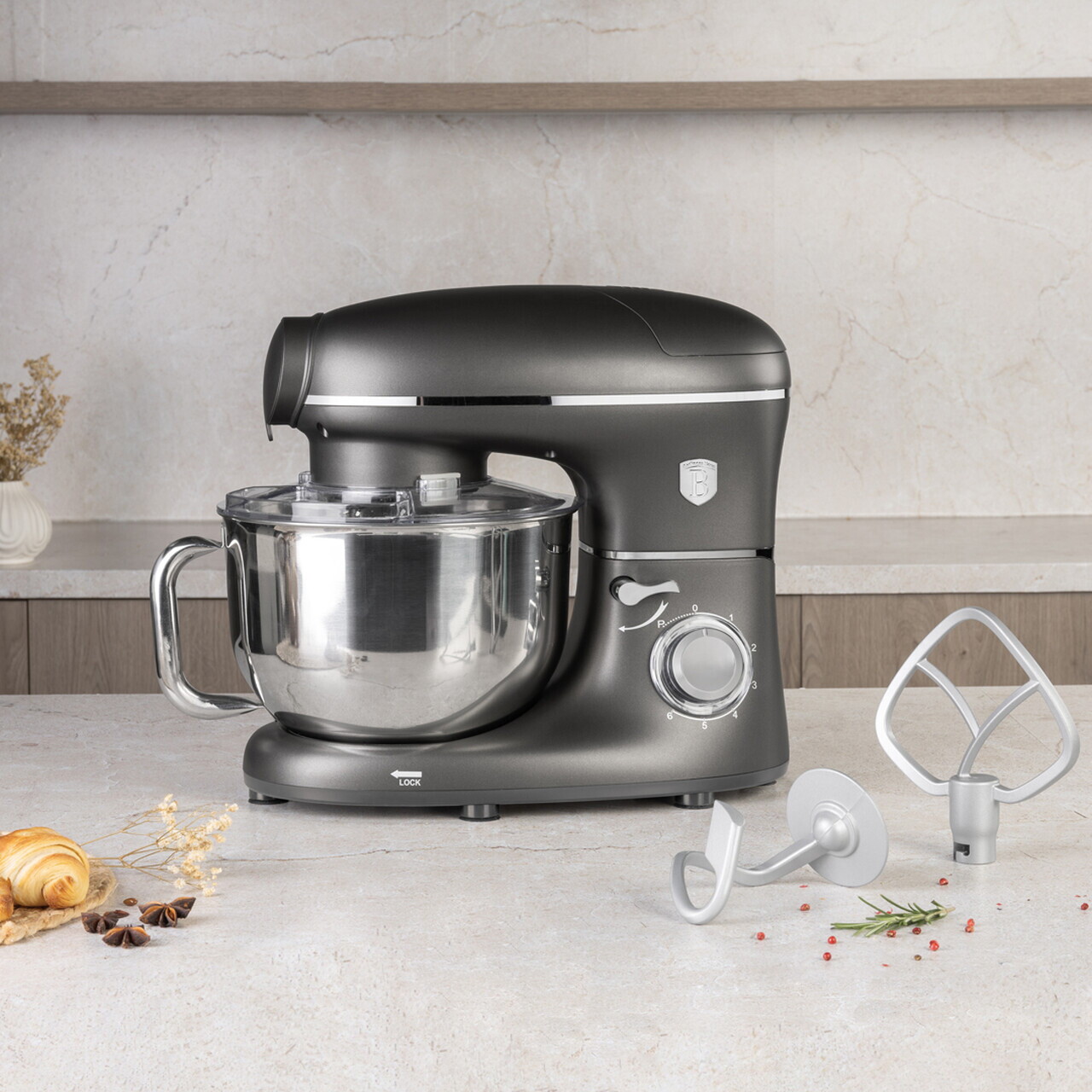 Robot de bucatarie 4 in 1 Berlinger Haus, Taupe, 1500W, inox/plastic, taupe mat/argintiu
