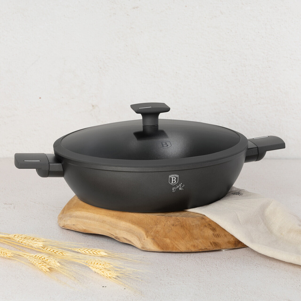 Tigaie Wok cu capac Berlinger Haus, Anthracite, 30 cm, aluminiu forjat, antracit mat