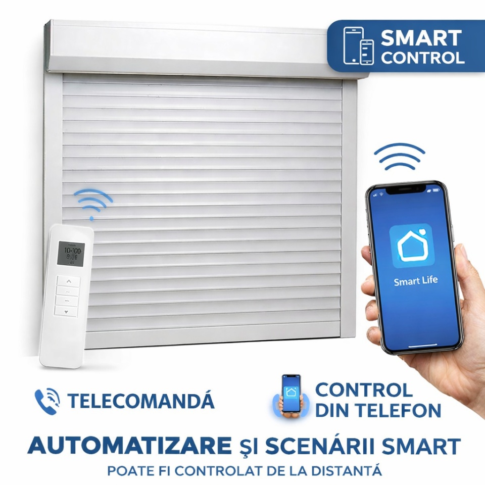 Rulou Exterior Aluminiu Alb cu Motor, Telecomandă și Control din Telefon