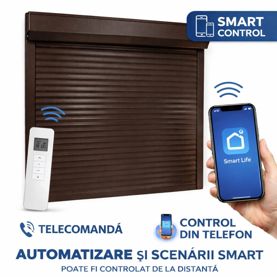 Rulou Exterior Aluminiu Maro cu Motor, Telecomandă și Control din Telefon