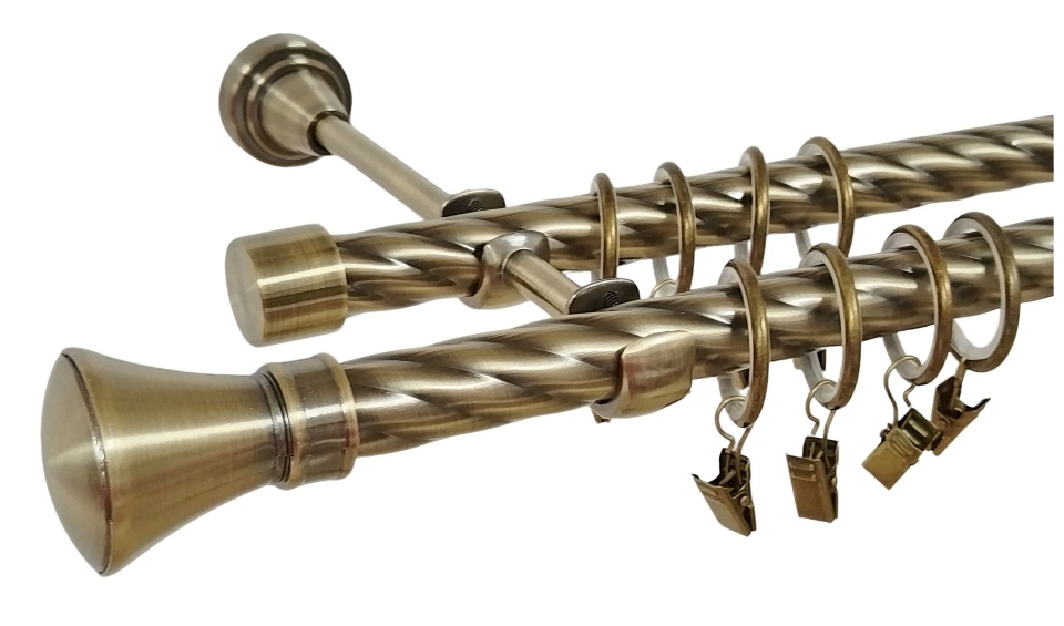Galerie dubla twist picior universal fara inele prindere perete prince 19/19 mm aur antic