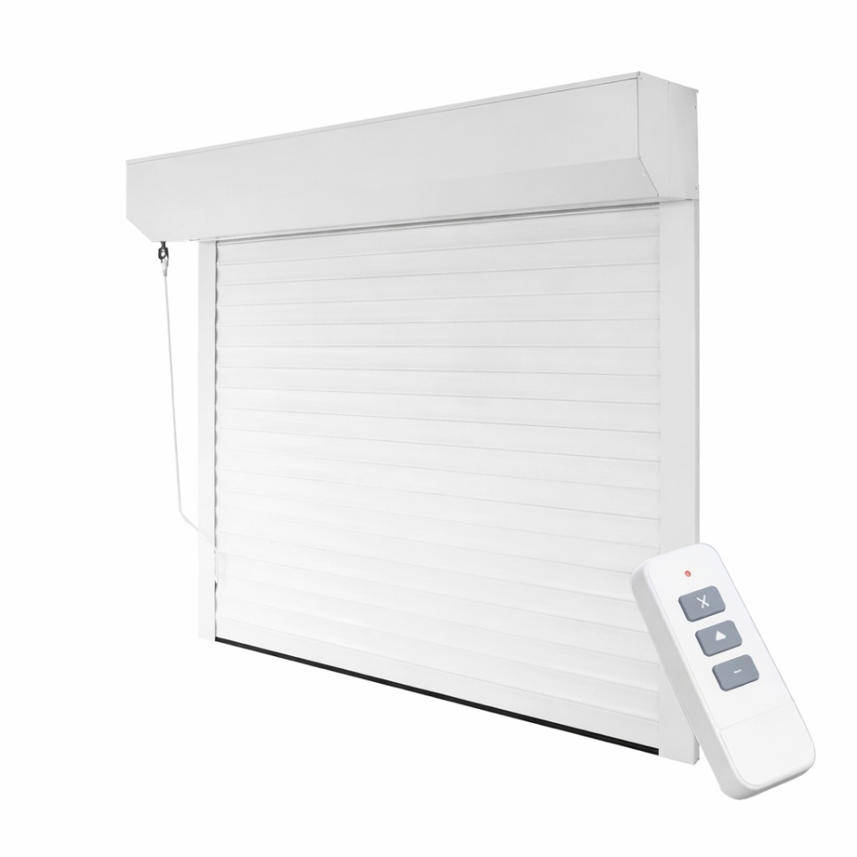 Usa de garaj tip rulou aluminiu lamela 55 mm cu motor si telecomanda – alb