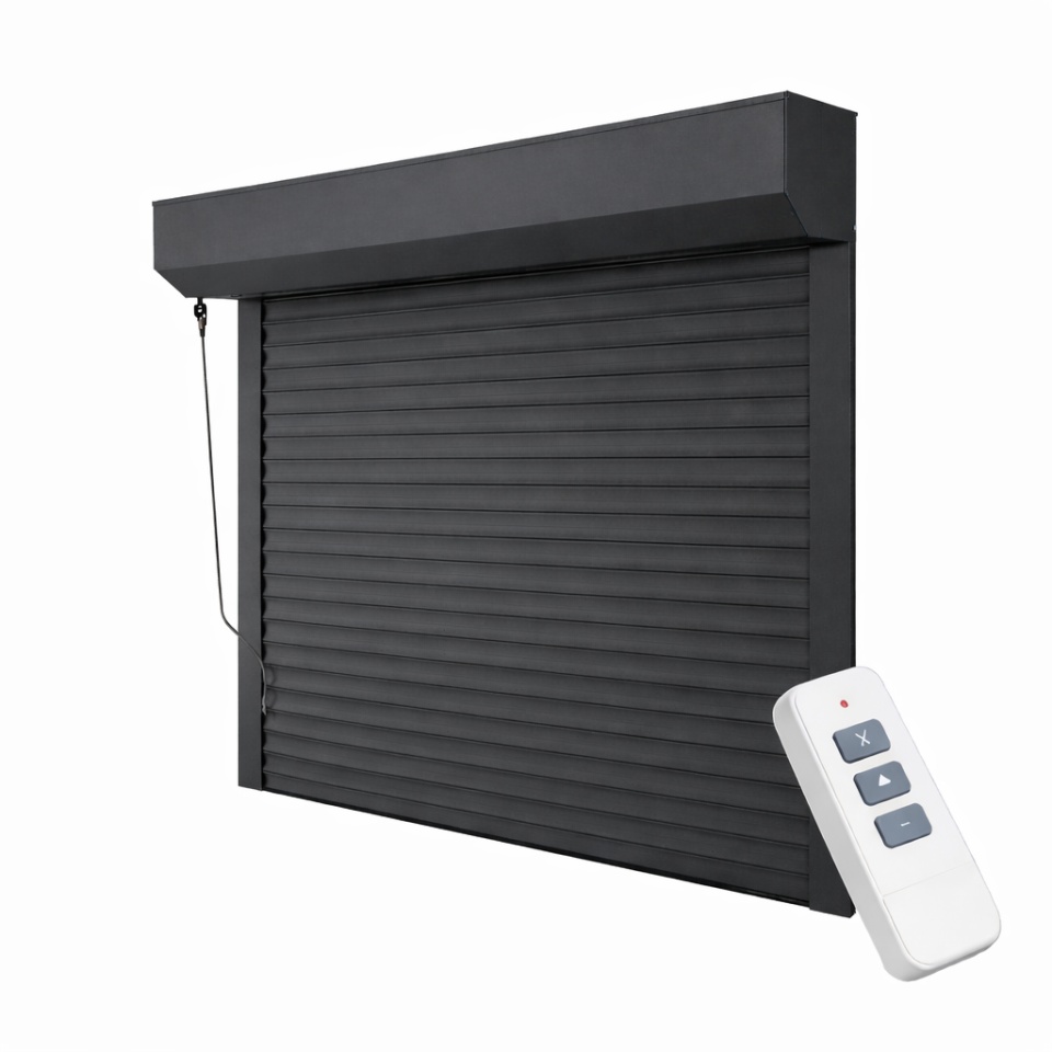 Usa de garaj tip rulou aluminiu lamela 55 mm cu motor si telecomanda gri antracit