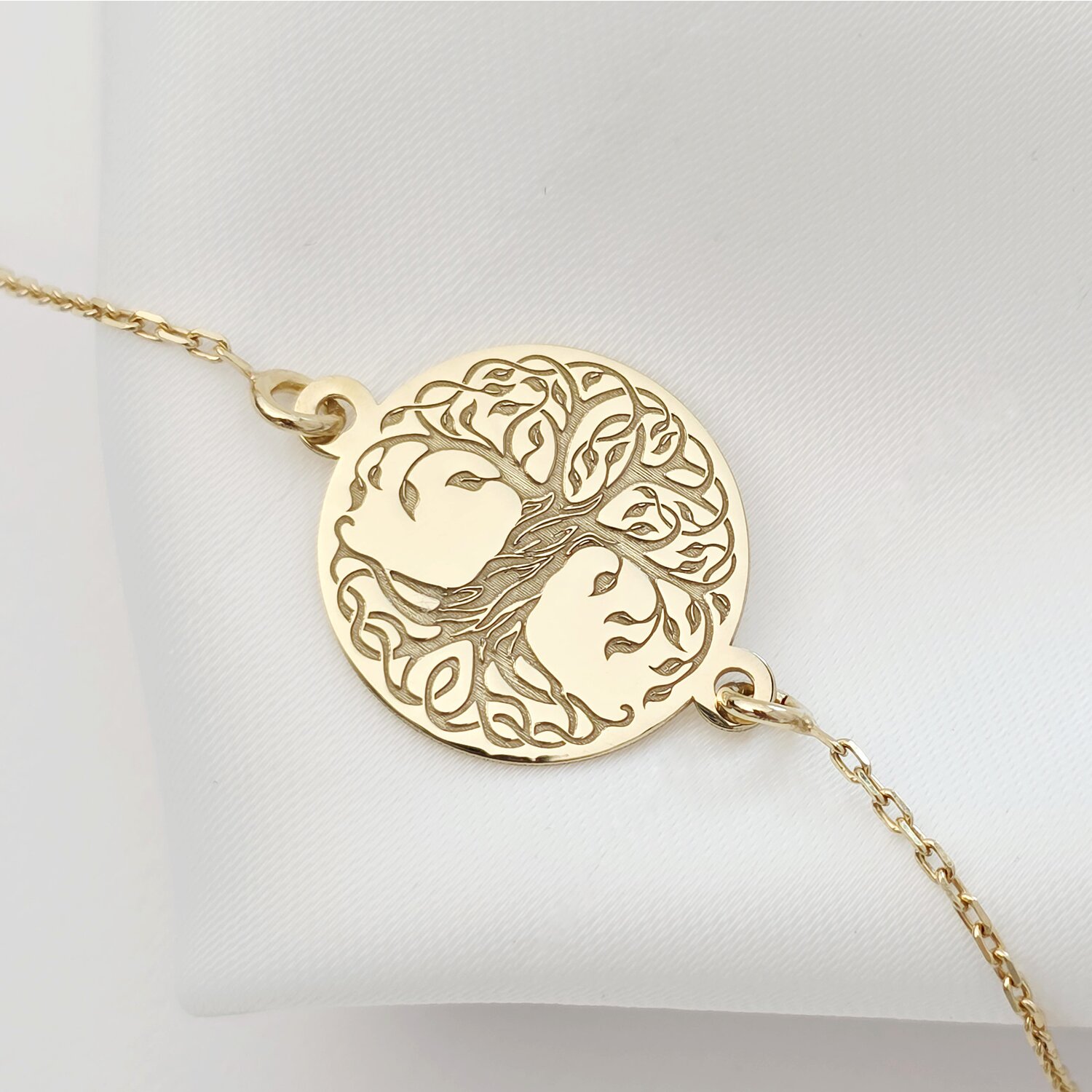 Bratara banut cu copacul vietii gravat - Argint 925 placat cu Aur Galben 18K si lantisor