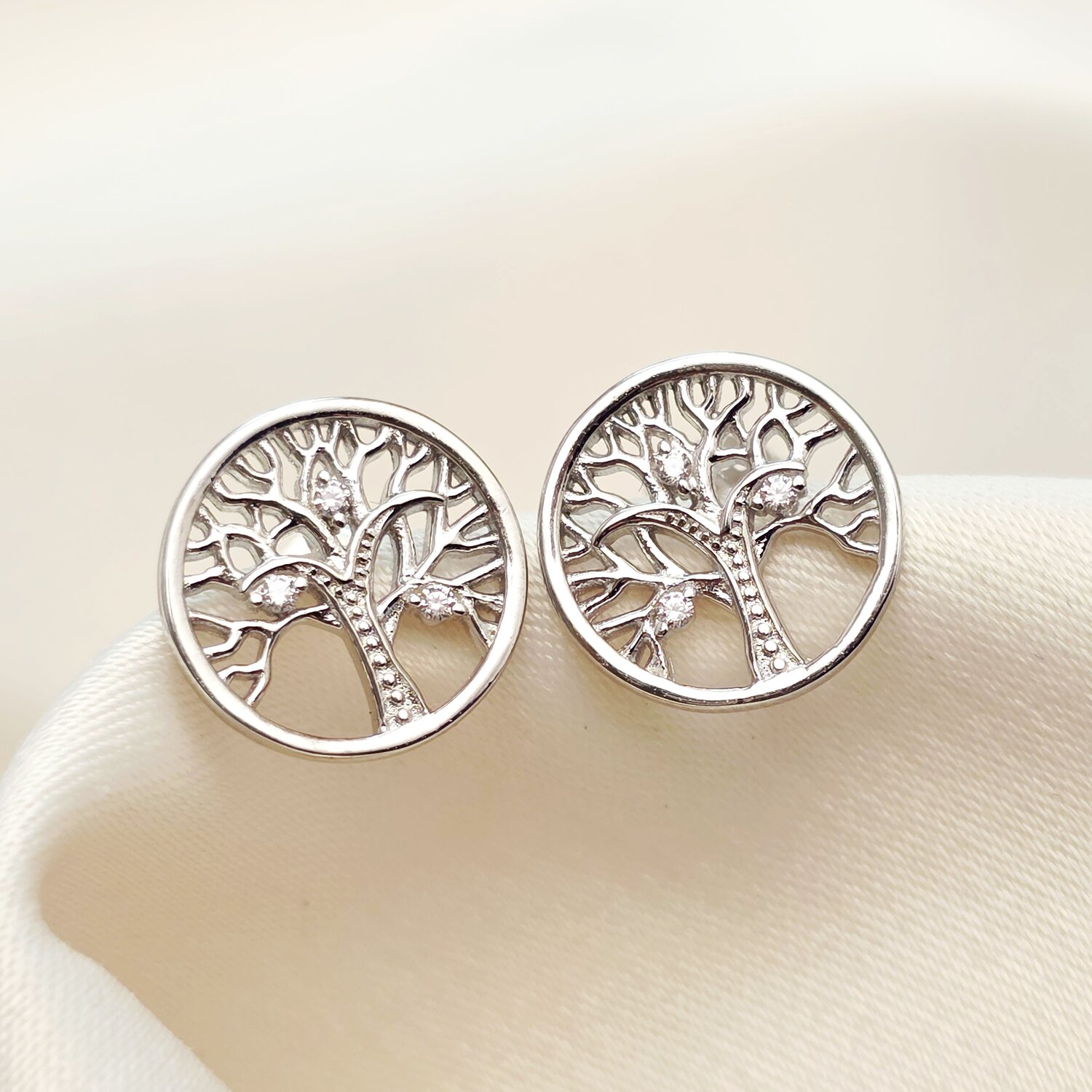 Cercei Copacul Vietii - decorat cu Zirconii albe - Argint 925
