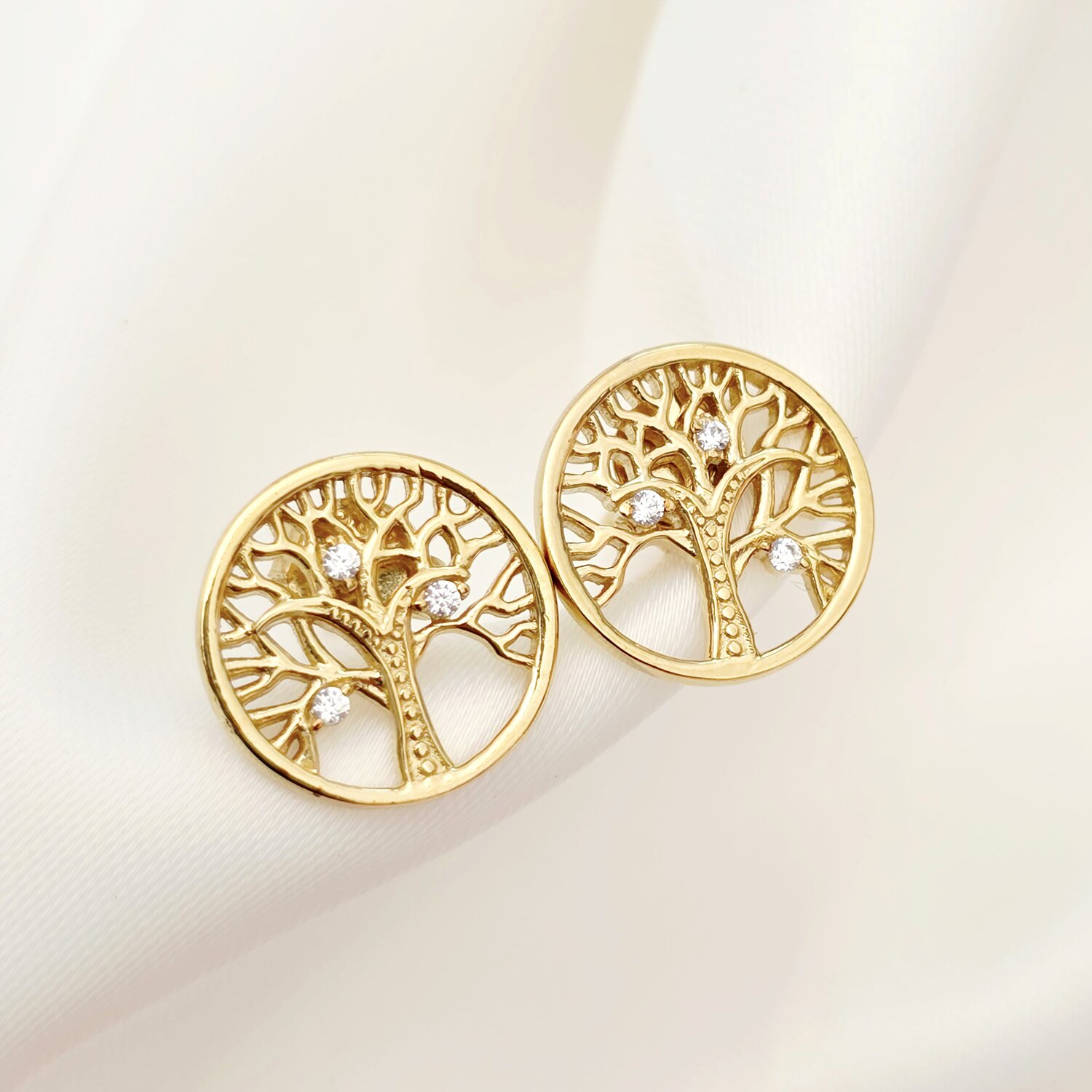 Cercei Copacul Vietii - decorat cu Zirconii albe - Argint 925 placat cu Aur Galben 18K