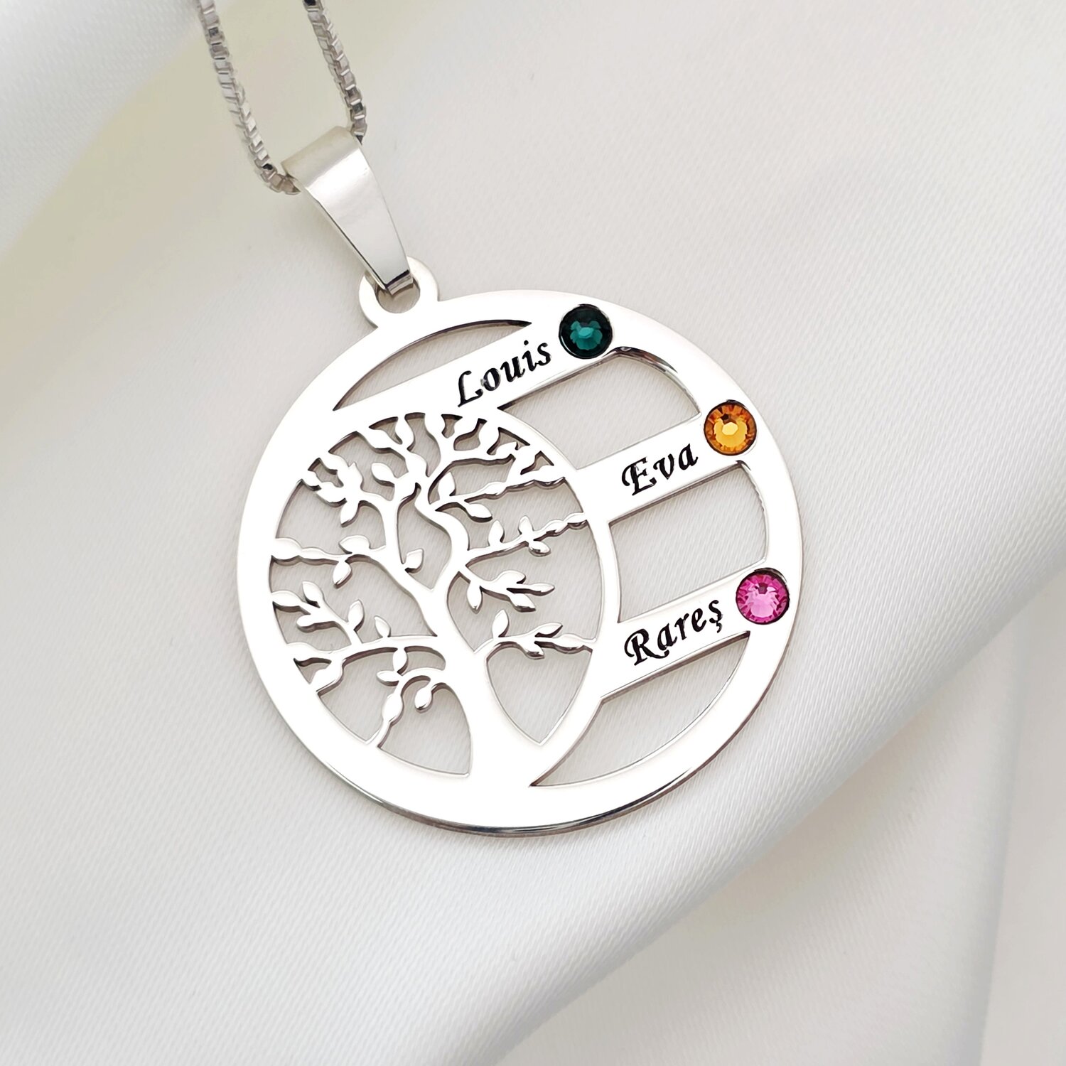 Lantisor cu pandantiv personalizat - Copacul Vietii inconjurat de nume - Argint 925