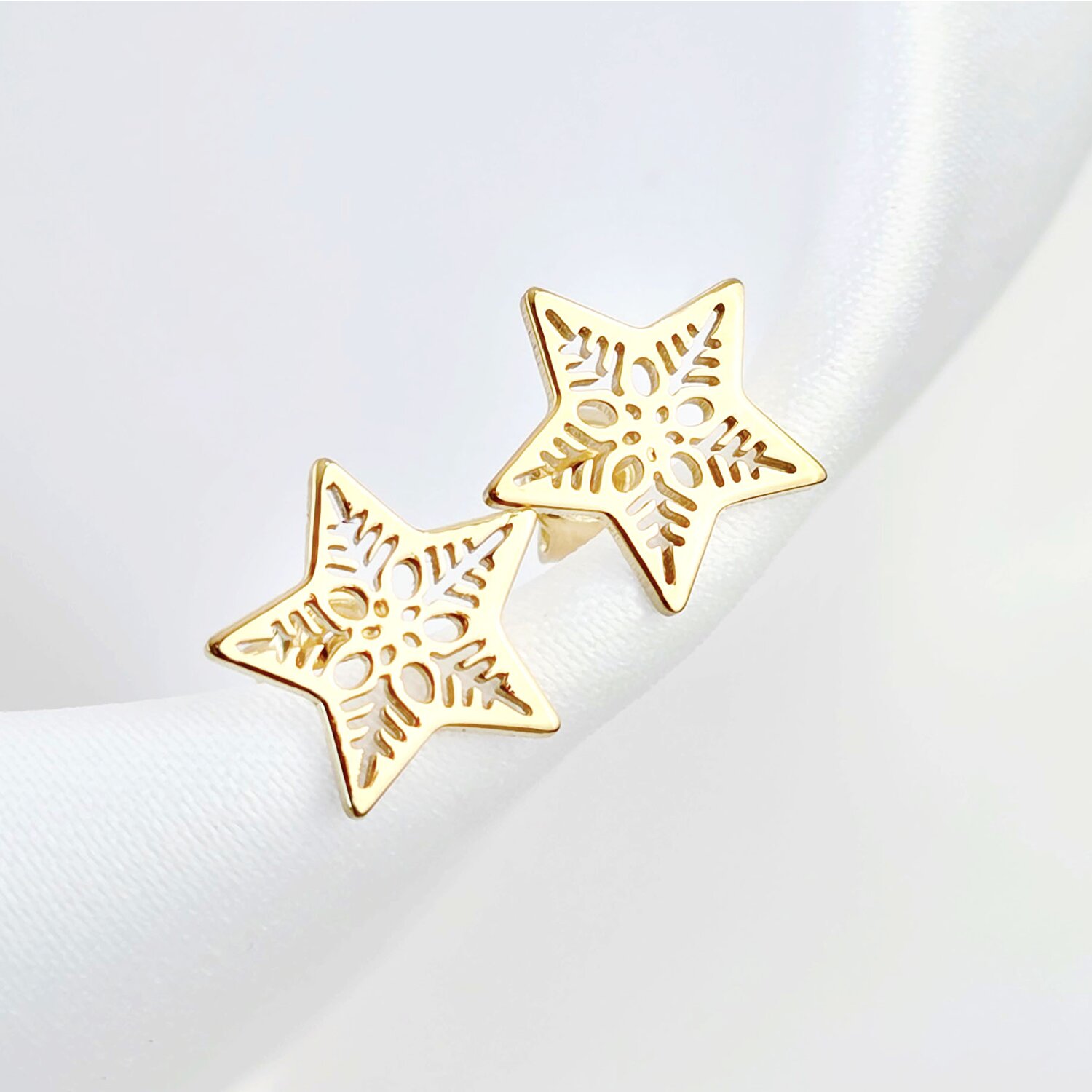 Cercei Stea cu decupaje - Argint 925 placat cu Aur Galben 18K