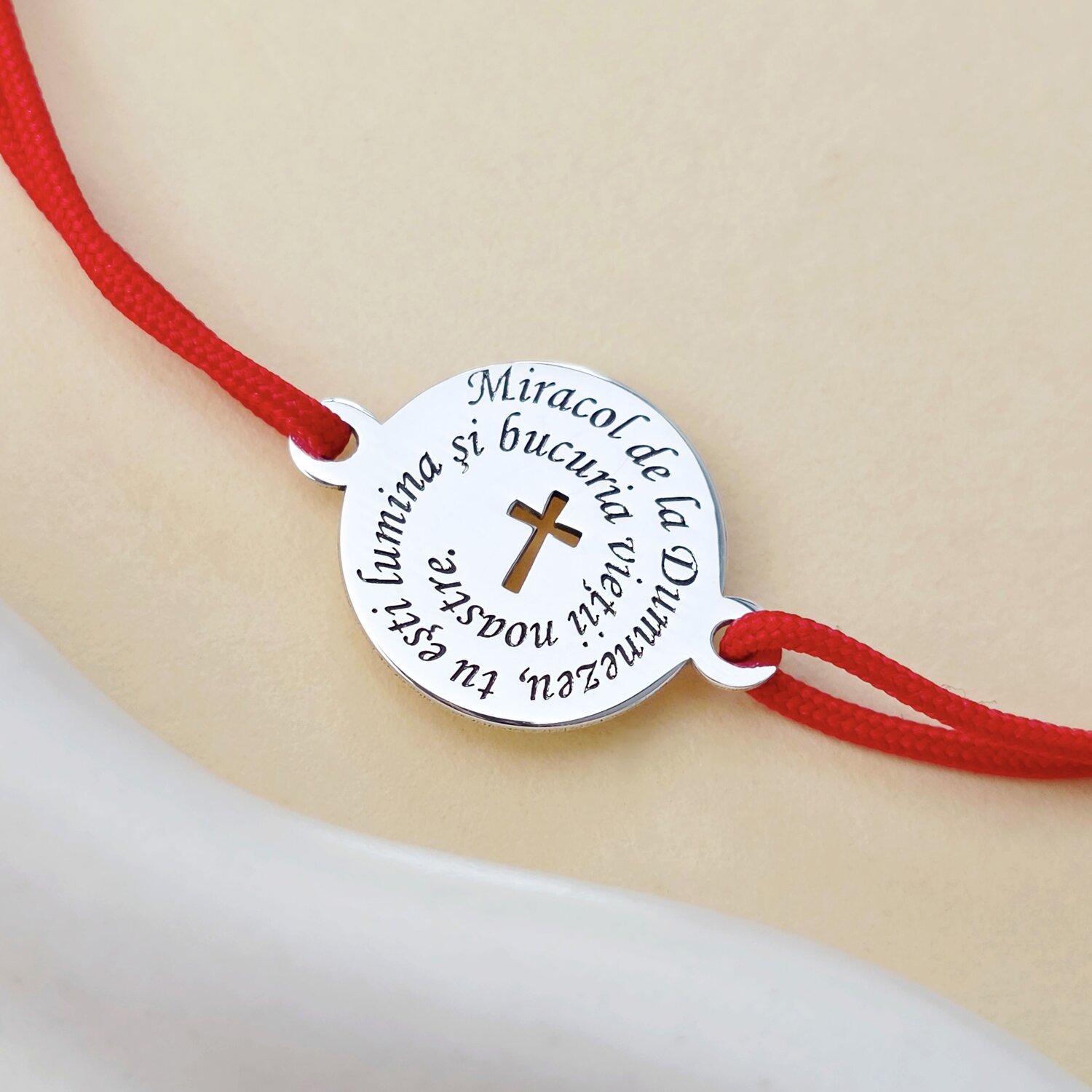 Bratara Miracol de la Dumnezeu - Bijuterie cu har pentru copil - Banut 12 mm - Argint 925 - Snur reglabil