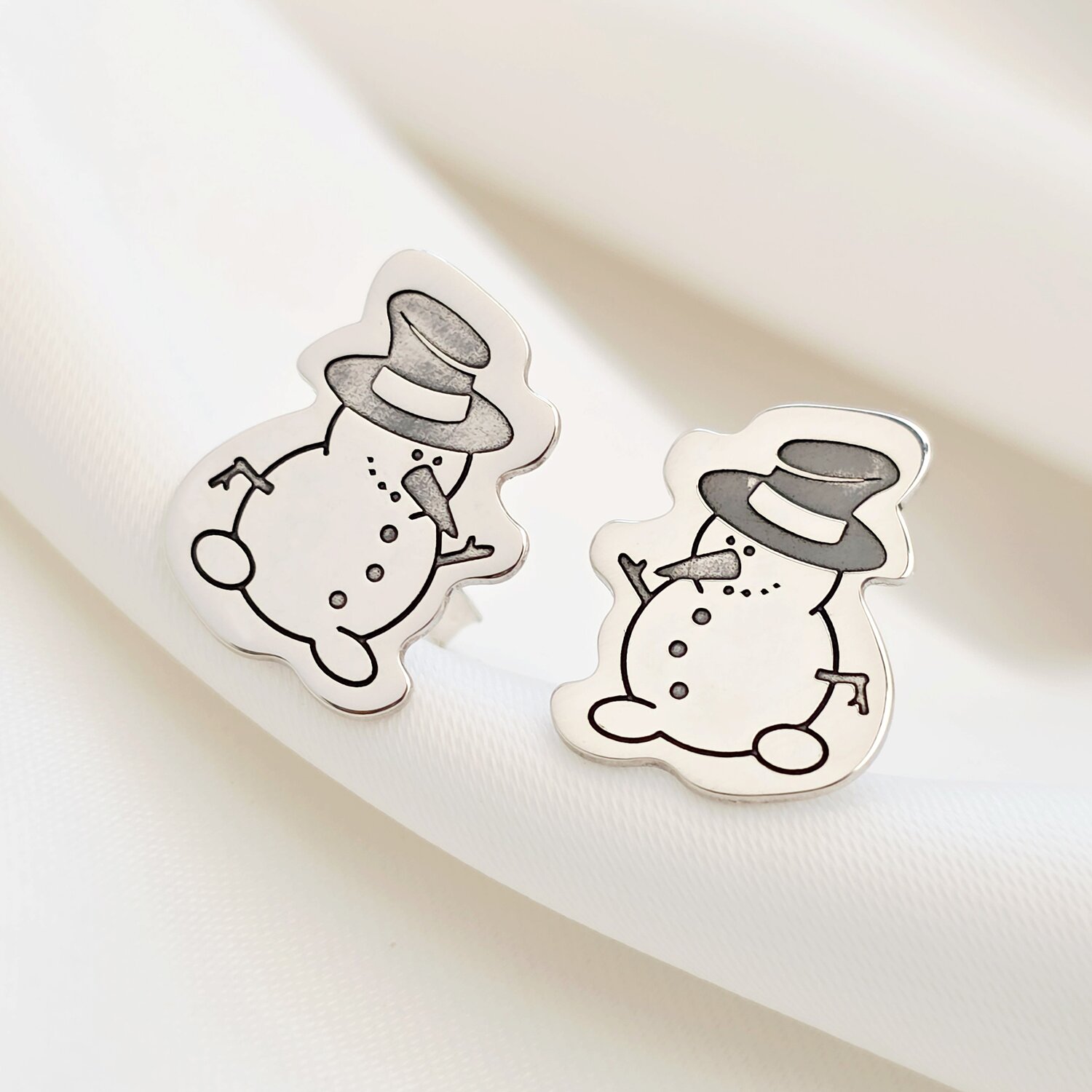 Cercei Craciun - Omul de zapada - Argint 925, surub