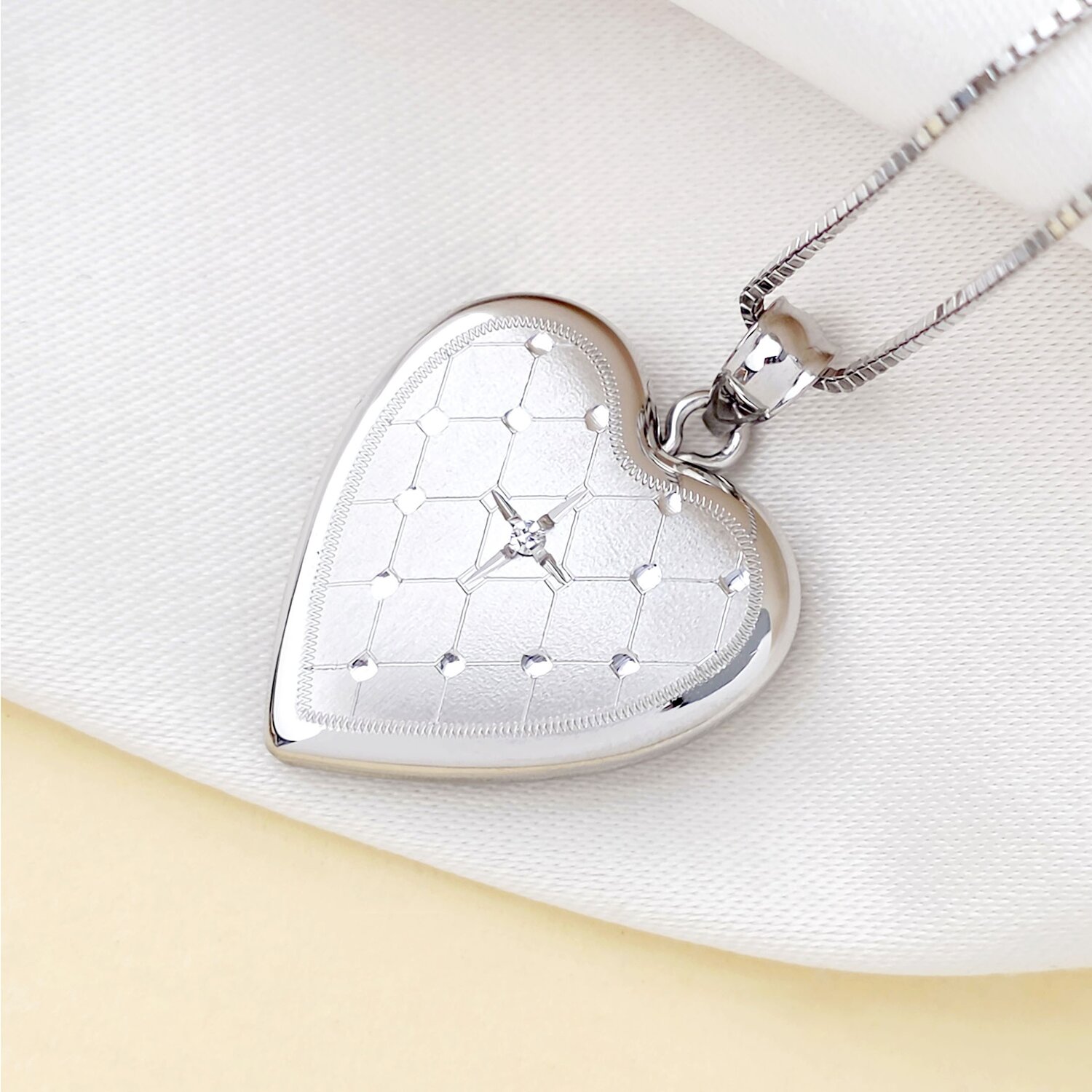 Medalion inima cu poze in interior - White Shimmer - Argint 925 Rodiat - Cristale Zirconia