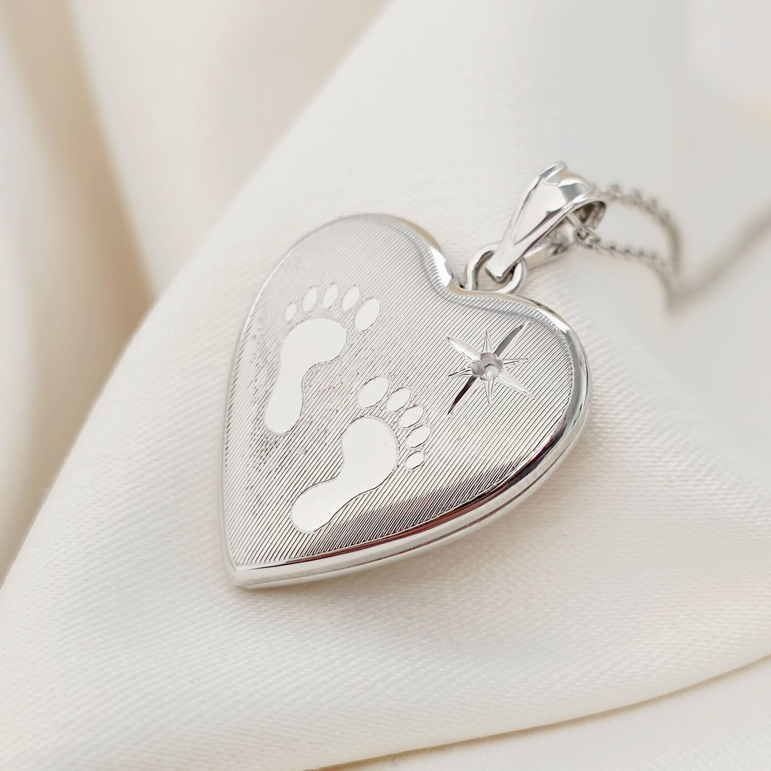 Medalion inima cu poze in interior - Footsteps&Birthstone - Argint 925 Rodiat
