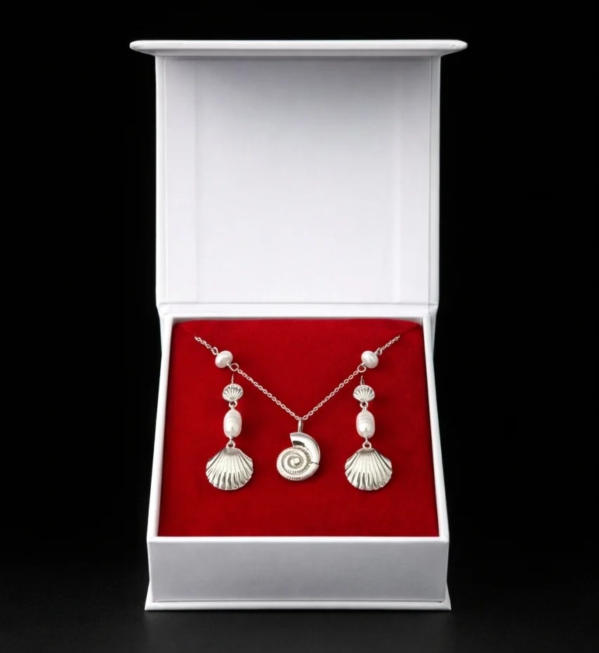 Set cadou pentru dama, Lantisor + Cercei, model scoica, SET23