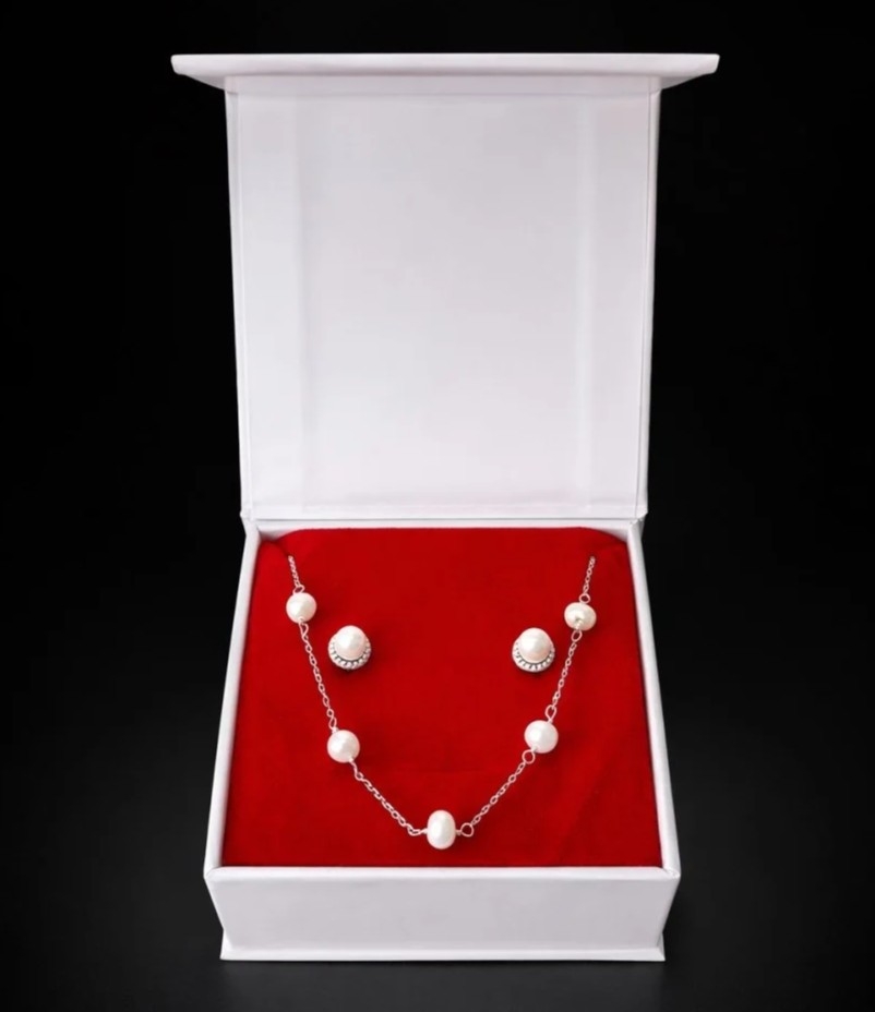 Set cadou pentru dama, Lantisor + Cercei, model perle, SET22