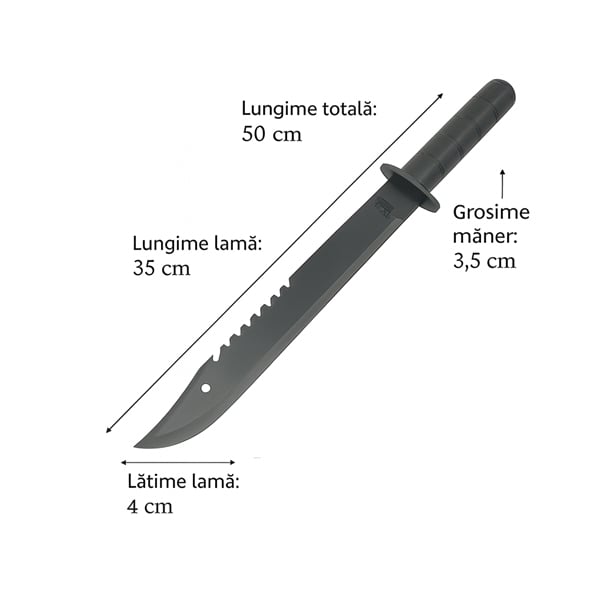 Sabie de vanatoare DEPOX®, Ninja Blade, maner metal, 50 cm, negru, teaca inclusa