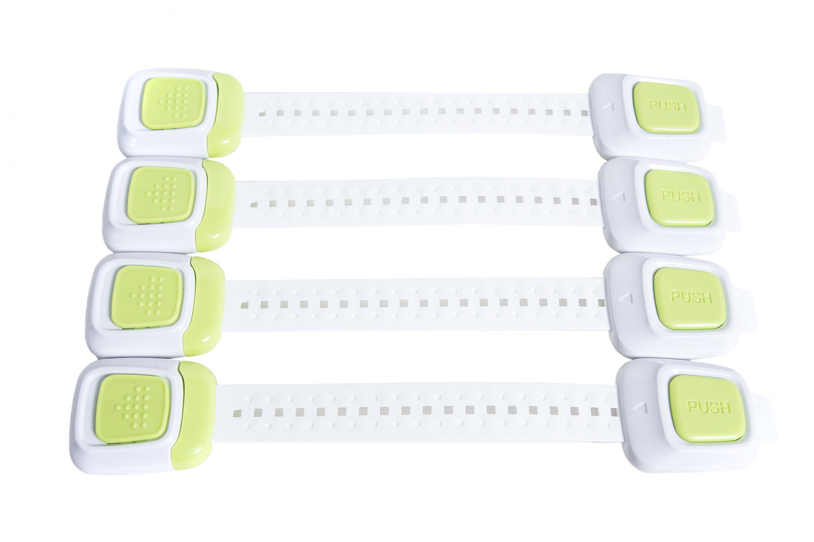 Set 4 sigurante flexibile cu incuietoare dubla pentru usi si sertare, 25 cm, Verde Alb Verde/Alb
