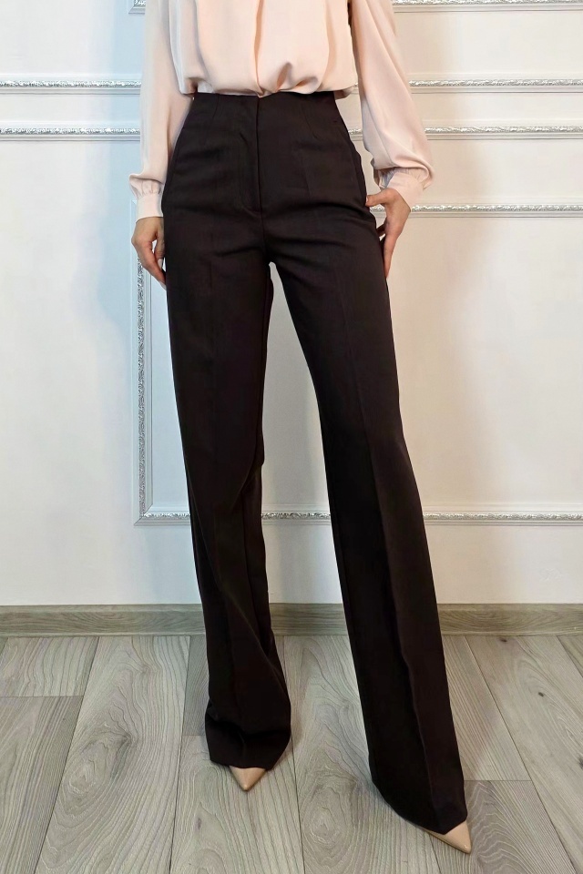Pantaloni Politeh, evazati, cu talie inalta, Maro inchis, Marime S/M