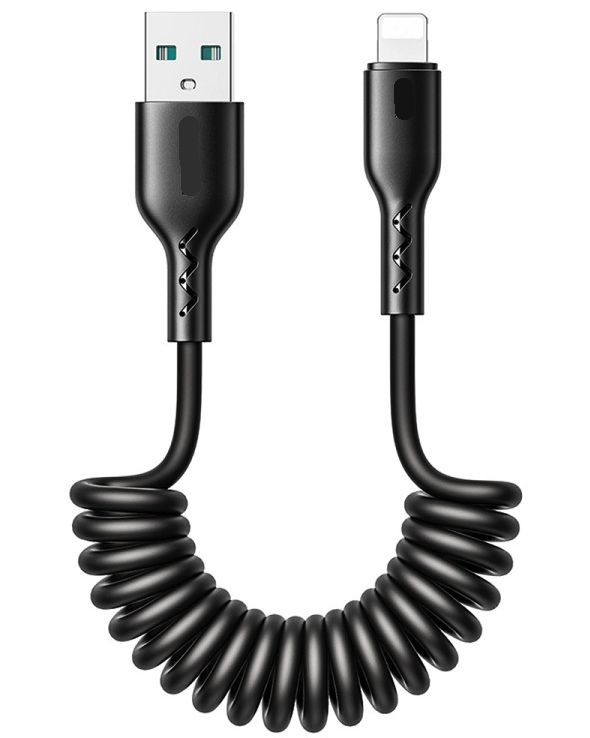 Cablu de date USB la iPhone Lightning spiralat negru