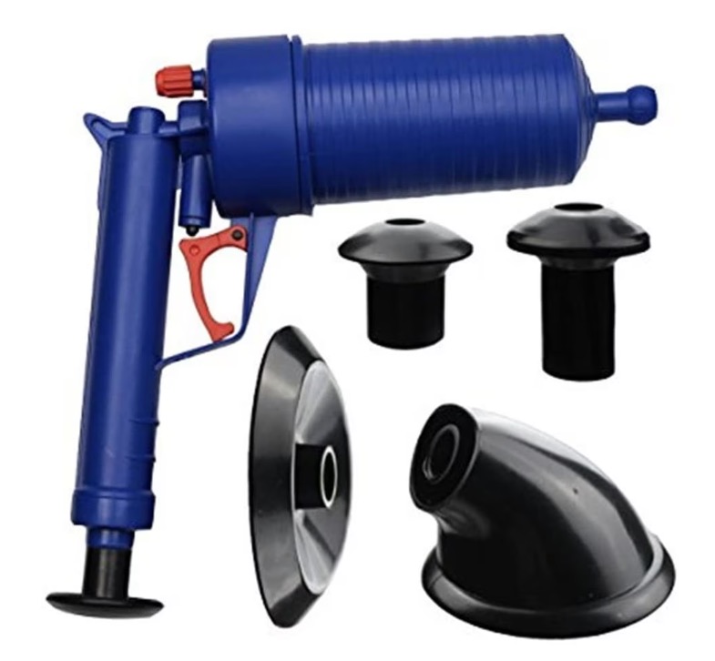 Pompa cu aer comprimat cu 4 accesorii pentru desfundat tevile de la chiuvete