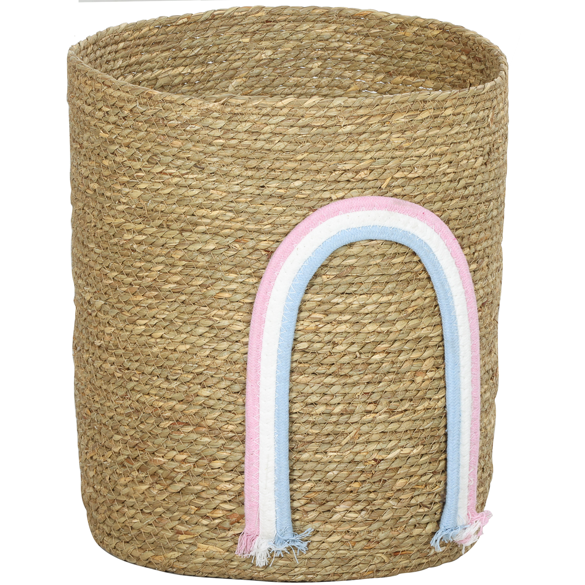 HOMCOM Coș de depozitare 24,7L cu decorațiune curcubeu, coș împletit mare pentru baie, dormitor, natural | Aosom Romania