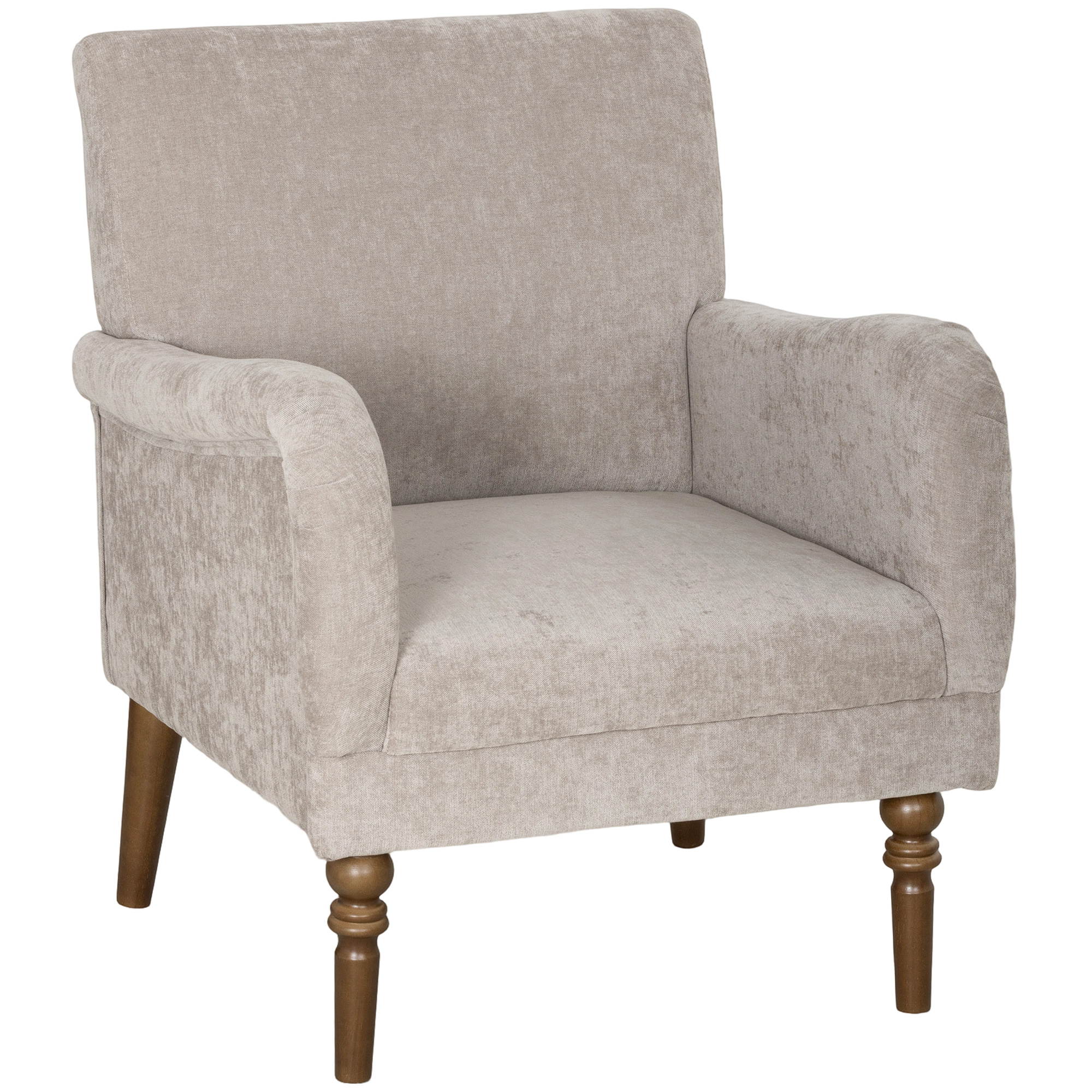 HOMCOM Fotoliu Modern, Scaun Accent Tapițat cu Picioare din Lemn, Scaun din Material Textil, 74x63x73 cm, Gri | Aosom Romania