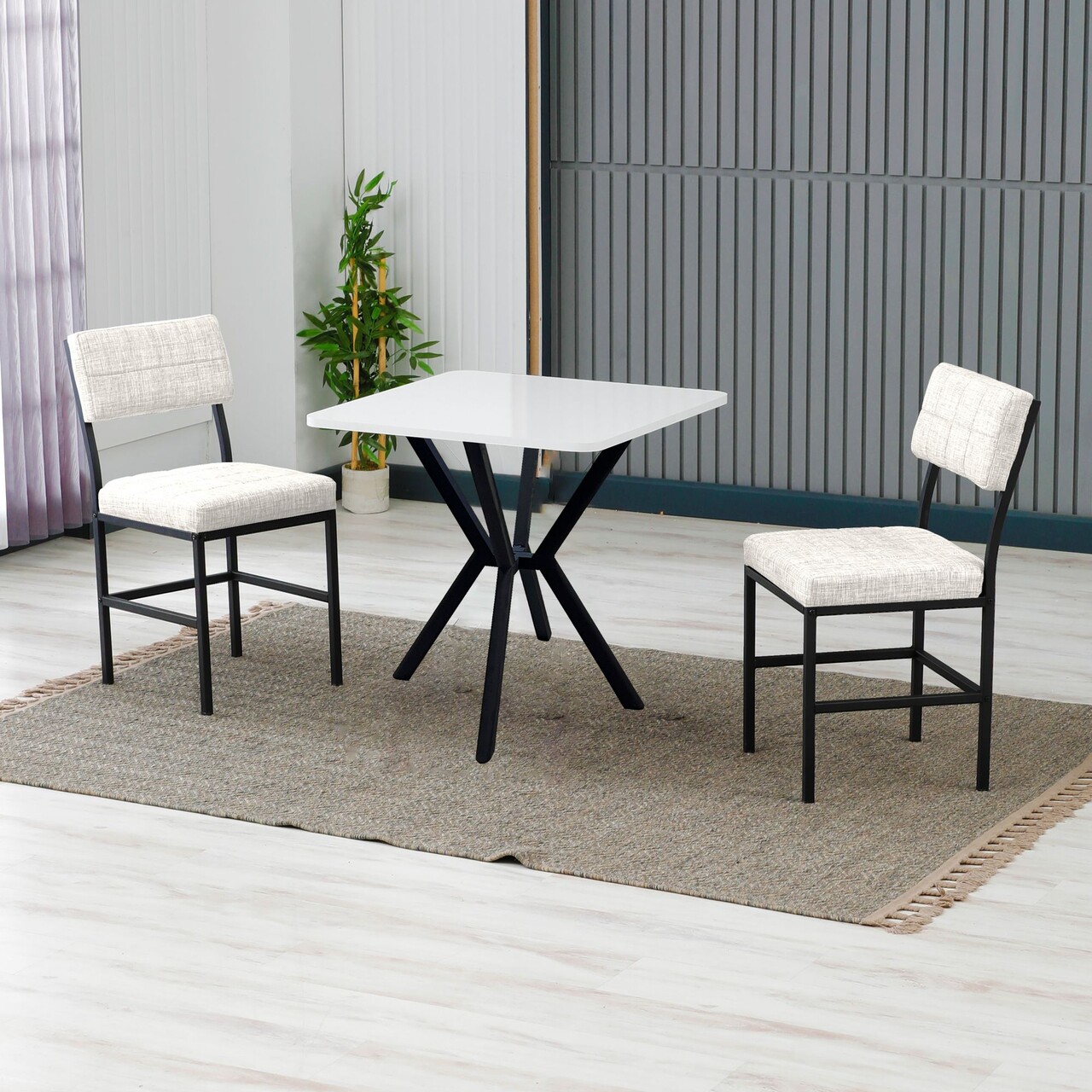 Set masa extensibila si scaune, Hanah Home, Zen, Alb/Negru