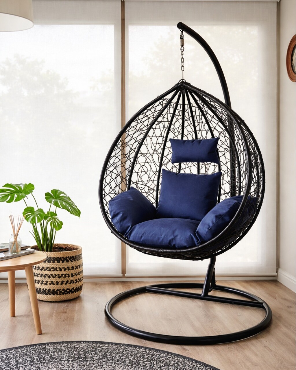 Leagan cu 3 locuri, Heinner, 175x122x155 cm, otel/poliester, albastru
