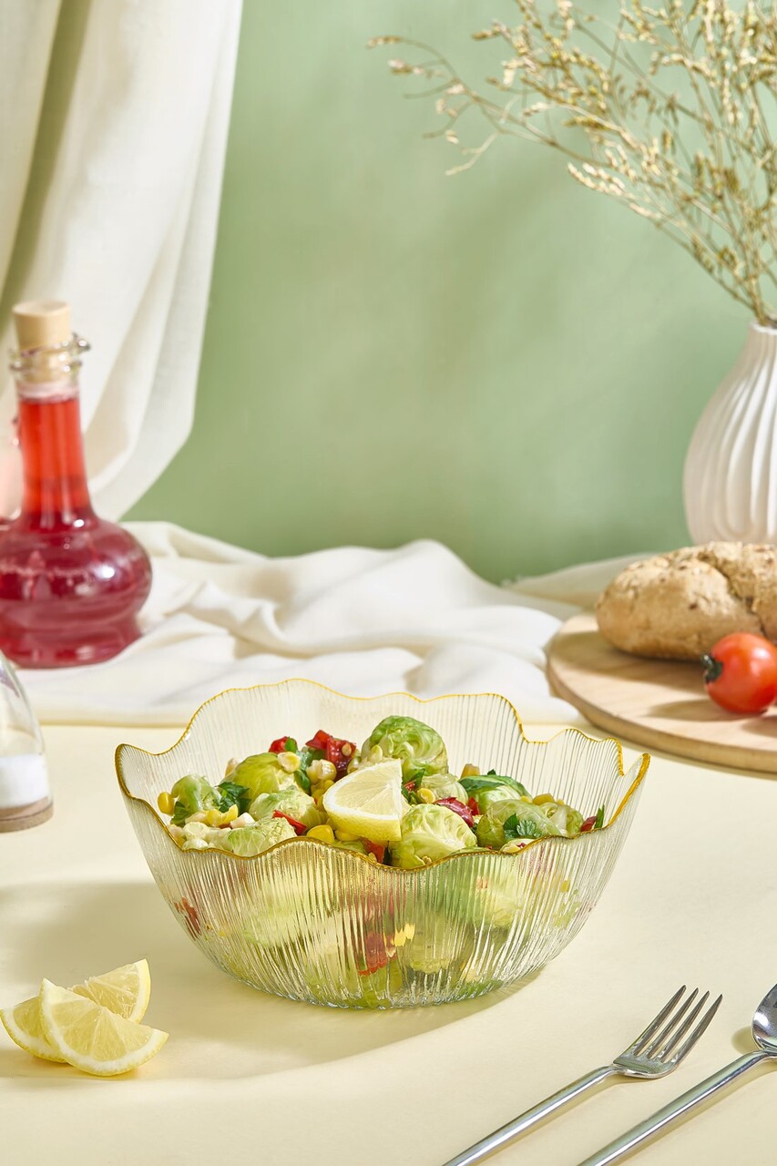 Bol de salată din sticlă, Hermia, 337GLZ1174, Cu ramă aurie, Transparent