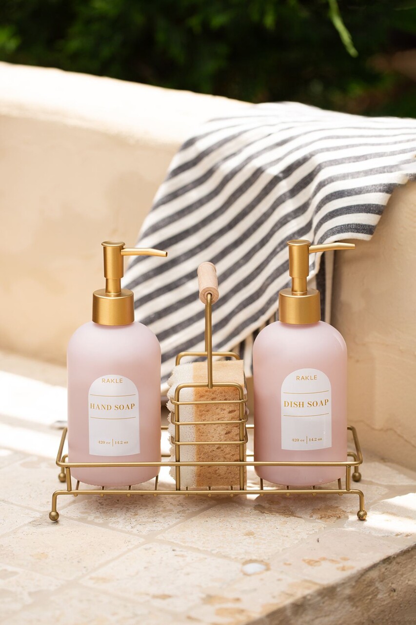 Set dozator de sapun, Hermia, 127RKL1425, Suport metalic (1 bucată), Roz
