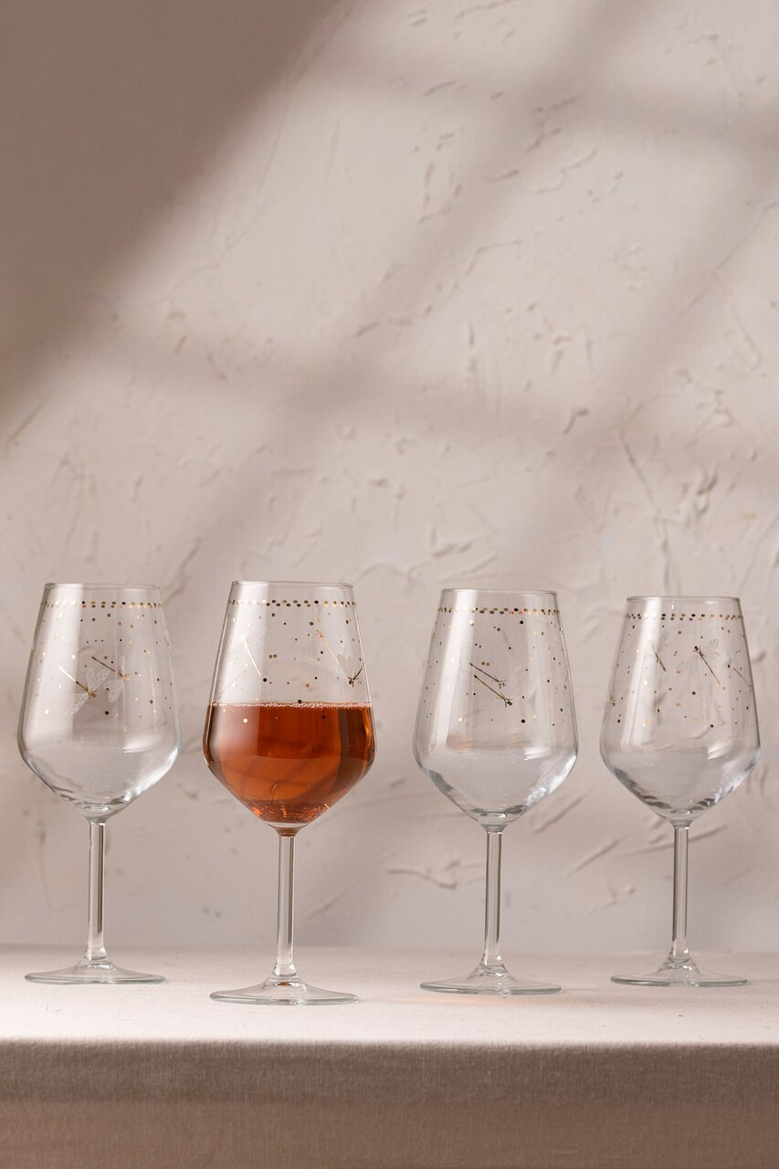 Set de pahare de vin, Hermia, 127RKL1113, Auriu / Transparent