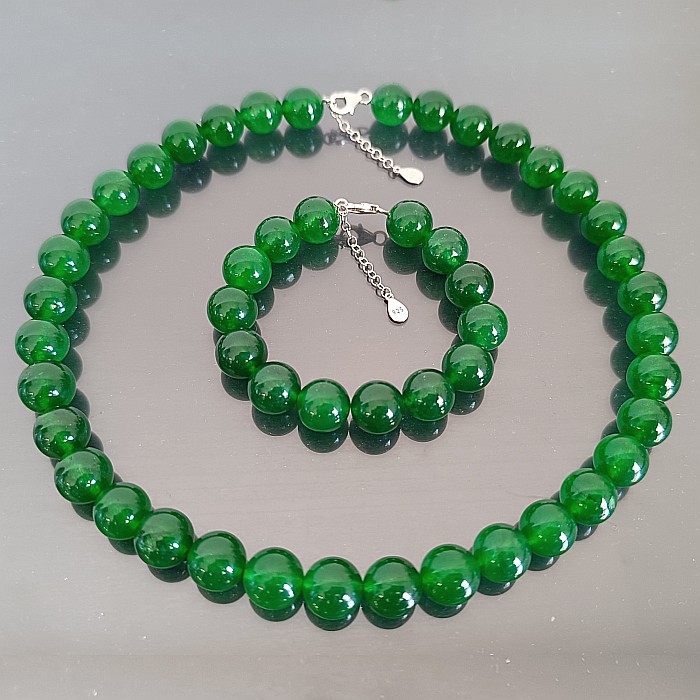 Set Colier si Bratara cu Jad Verde Malaezian de 12 mm si Inchizatori din Argint