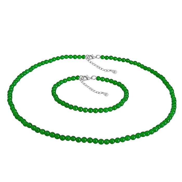 Set Colier si Bratara cu Jad Verde Malaezian de 4 mm si Inchizatori din Argint