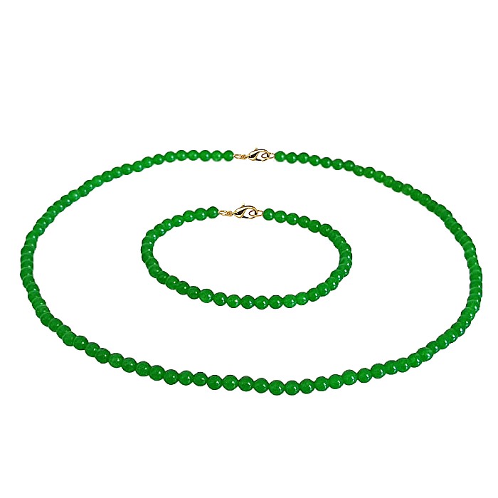 Set Colier si Bratara cu Jad Verde Malaezian de 4 mm si Inchizatori din Aur de 14 k