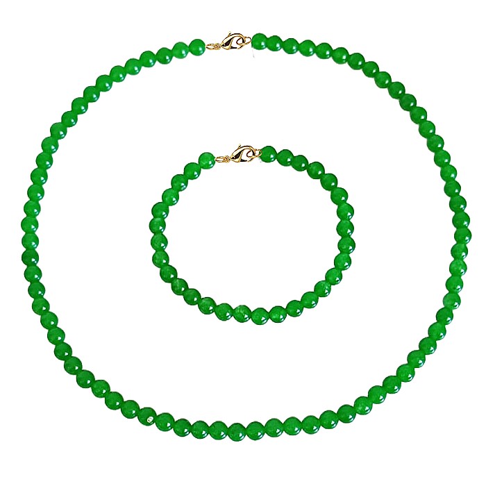 Set Colier si Bratara cu Jad Verde Malaezian de 6 mm si Inchizatori din Aur de 14 k