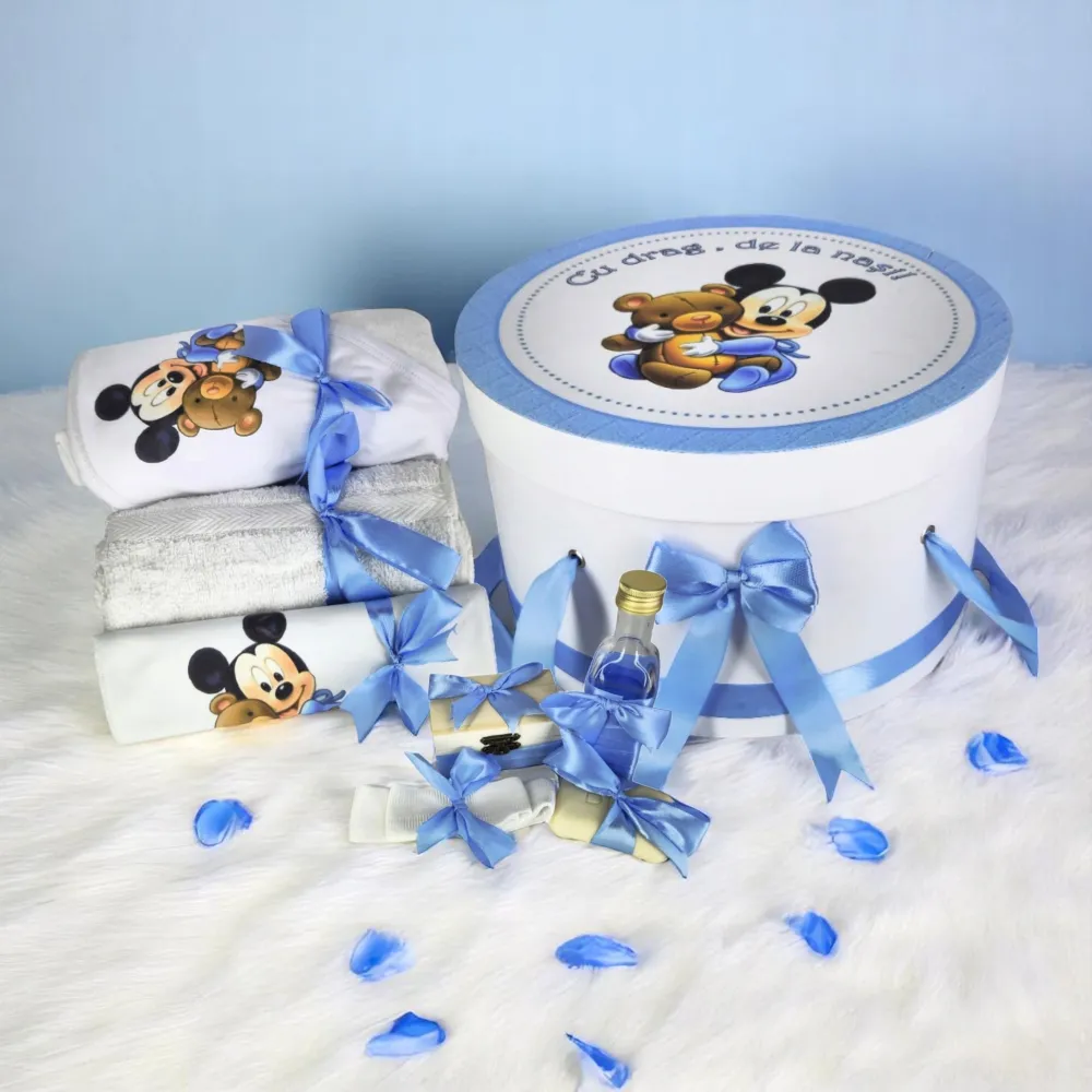 Trusou Botez cu 8 Piese Imprimat, Mickey Mouse, Culoare Albastru - TB213