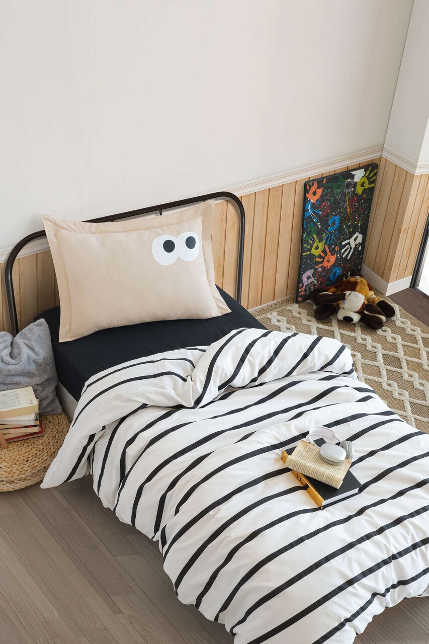 Set de pat pentru o persoana (cearceaf cu elastic si perna) 2 piese, Lessentiel Maison, Funny, Negru/Maro