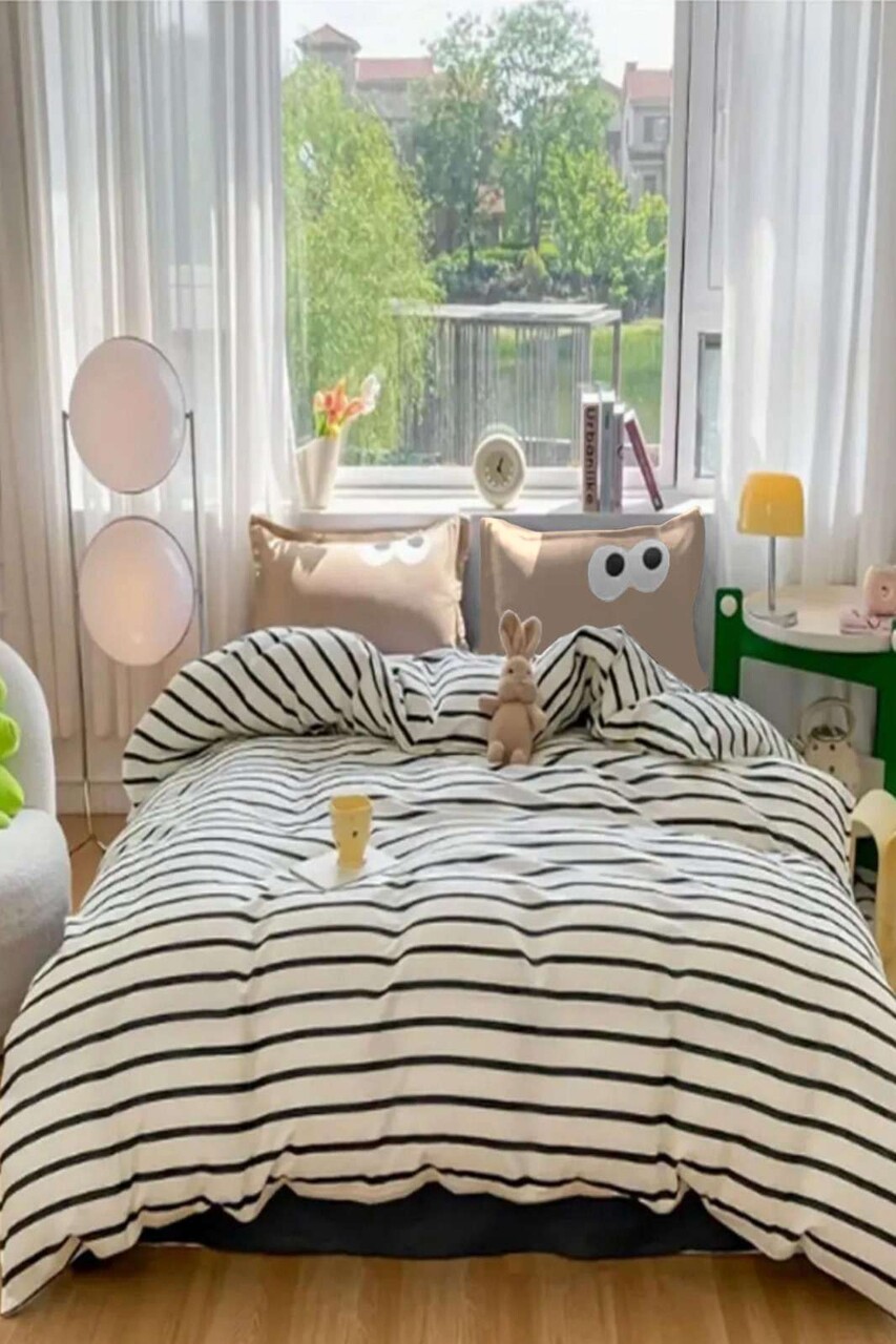 Set de pat pentru o persoana (cearceaf cu elastic si perna) 2 piese, Lessentiel Maison, Funny Cizgili, Maro