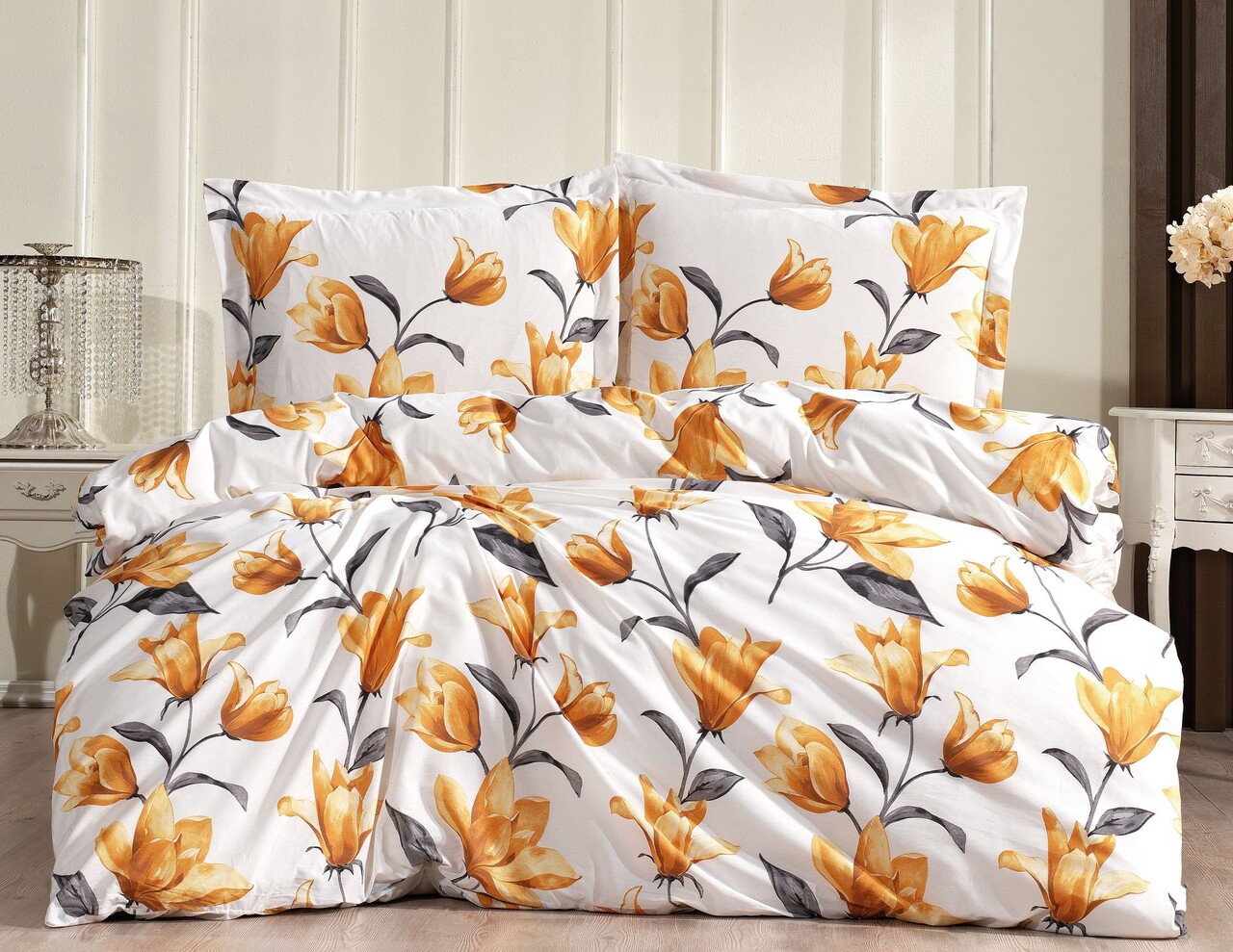 Lenjerie de pat dubla (DE), Lessentiel Maison, Crocus, Alb / Galben / Negru